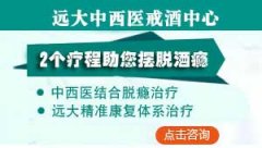 远大特色戒酒体系以传统医学为基础,建立大量实验数据库,选取针对酒精依赖症具有显着效用的中草药,利用超微粉粹,融合药物作用分子;并结合现代先进医学技术,通过不同病症的对应的穴位渗透,中药分子直接作用病灶部位,疏通人体经络,恢复自身免疫机能,解决传统戒酒强制戒断对患者的痛苦,轻松戒酒不易复饮。>点击咨询了解更多治疗详情
